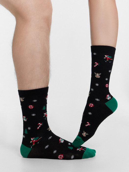 рис.2989 Носки унисекс классические, гладкие с новогодним рисунком.