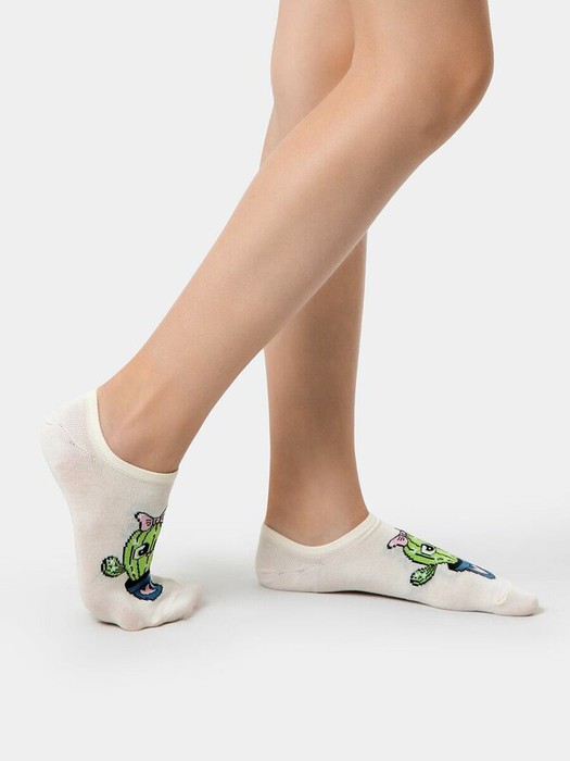 рис.2377 Детский носок гладкий суперкороткий с рисунком в виде кактусов
