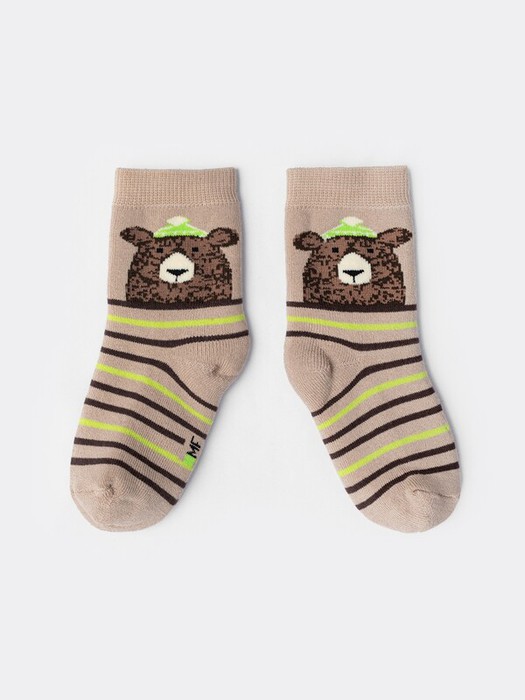 рис.1113 Детский махровый носок с рисунком в виде медведя и полосок