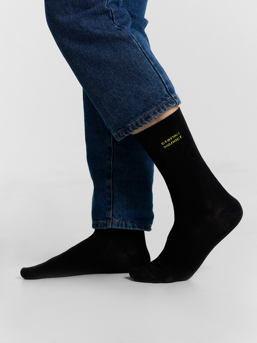рис.3035 Мужской носок классический, высокий, с рисунком в виде надписи "Статус холост".
