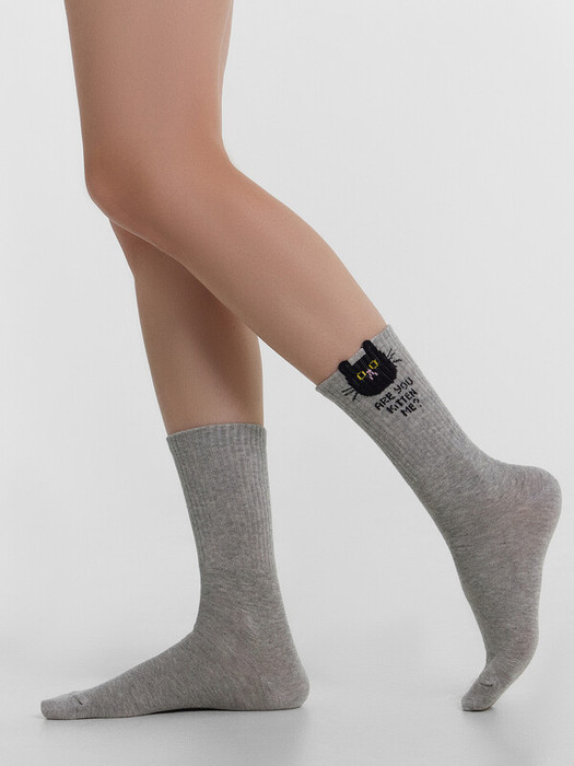 рис.3010 Женский носок с высоким плотным бортом, рисунком в виде котика и надписи.