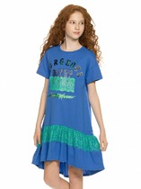 Сарафан для девочек А-силуэта с отрезным воланом по низу. Длина немного выше колена. Горловина круглая. Проймы и горловина окантованы бейкой из основного полотна. Низ изделия обработан швом в подгибку.