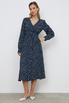 Платье-рубашка прямого кроя с отложным воротником на стойке. Рукава 3/4, Длина платья до колена или слегка ниже, рукавов – 3/4. Крупные накладные карманы и молния подчеркивают динамичность и делают образ более расслабленным.