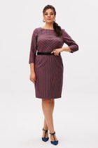 Платье женское полуприлегающего силуэта из трикотажного полотна селаник. Горловина круглой формы с воротником-стойкой, пройма углублена. Рукав полуреглан вверху обьемный со средним швом, к низу идет на заужение. На передней детали средний шов с разрезом по низу. Спинка с центральным швом и застежкой на потайную молнию. Длина платья ниже колена.