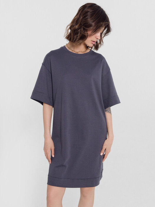 Платье свободного силуэта из трикотажного полотна интерлок/ Горловина круглой формы. Обтачка горловины из основного полотна.