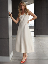 По низу платья широкая окантовка с сырым срезом.