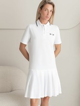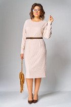 Платье женское прямого силуэта из трикотажного полотна селаник. Горловина круглой формы, с притачным воротником с отрезной стойкой из поплина и застежкой на пуговицу. Плечо слегка спущено, пройма углублена. Рукав втачной, длинный, по низу с отрезной манжетой из селаника. Платье длиной чуть выше колена.