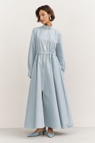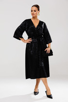 В правом боковом шве обработан разрез. Низ платья асимметричный.