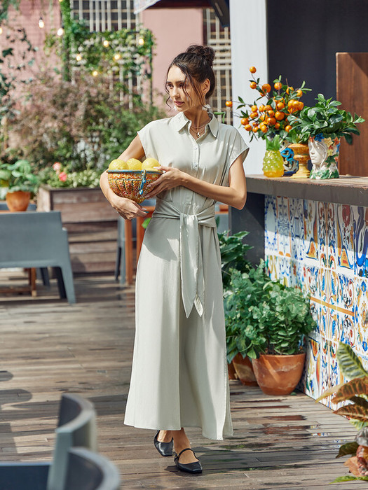 Рукав цельнокроеный. Платье отрезное по талии, на детали переда заложены односторонние складки, по спинке шов с эластичной тесьмой.