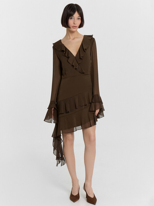 Очаровательное мини-платье с асимметричным кроем и воздушными рюшами — это воплощение элегантности и женственности! V-образный вырез подчеркивает линию шеи, придавая образу нотку утонченности, а длинные свободные рукава создают ощущение легкости и грации. Невесомый полиэстер дарит приятные тактильные ощущения и обеспечивает комфорт при носке, а подкладка гарантирует идеальную посадку. Идеальный вариант для особых случаев, романтических встреч или стильных вечеров! Это платье легко комбинируется с элегантной обувью и аксессуарами, создавая впечатляющий образ. Изящность, легкость и трендовый дизайн — всё, что нужно для безупречного выхода!