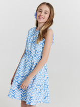 Сарафан А-силуэта, с отрезным воланом по низу. Kруглый вырез горловины, без рукавов. Низ изделия обработан швом в подгибку.