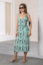 Сарафан женский А-силуэта из ткани. Горловина V-образной формы. По спинке горловина V-образной формы, по центру спинки сборка.
