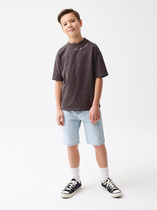Короткие шорты для девочек прямого силуэта. Посадка средняя. Пояс отрезной с эластичной тесьмой и декоративным шнуром. По поясу выполнена декоративная строчка. На передних половинах обработаны карманы с наклонным входом от боковых швов. Низ шорт обработан швом в подгибку.