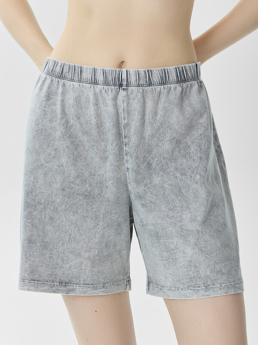 Шорты с посадкой на талии свободного силуэта. Пояс цельнокроеный с резиной внутри 30RV.  Низ изделия застрочен швом в подгибку.