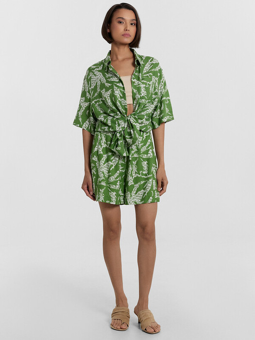 Эти женские шорты свободного силуэта — стильный и удобный вариант для повседневных образов. Благодаря эластичному поясу на кулиске, модель обеспечивает комфортную посадку, а боковые карманы добавляют практичности. Легкое расширение к низу создает расслабленный силуэт, а длина выше колена делает шорты универсальными для различных сочетаний. Изделие выполнено из вискозы — материала, который отличается мягкостью, воздухопроницаемостью и приятными тактильными свойствами. Дополните эти шорты подходящей рубашкой из этой же коллекции, чтобы создать гармоничный и стильный образ для жарких летних дней!
