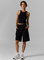 Шорты изготовлены из полотна - Интерлок. Шорты облегающего силуэта с высокой линией талии, короткие. Пояс широкий отрезной фигурный с эластичной тесьмой внутри. Боковой шов перенесен на деталь переда. На задних половинках отрезная фигурная кокетка.