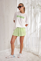 Мини-шорты свободного силуэта из легкого трикотажного футера. Высокая посадка на талии, эластичная тесьма в поясе, регулировочный шнурок-завязка и удобные боковые карманы – комфортный минимализм!