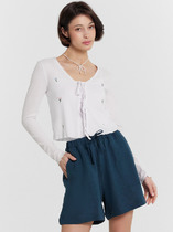 Мини-шорты свободного силуэта из легкого трикотажного футера. Высокая посадка на талии, эластичная тесьма в поясе, регулировочный шнурок-завязка и удобные боковые карманы – комфортный минимализм!