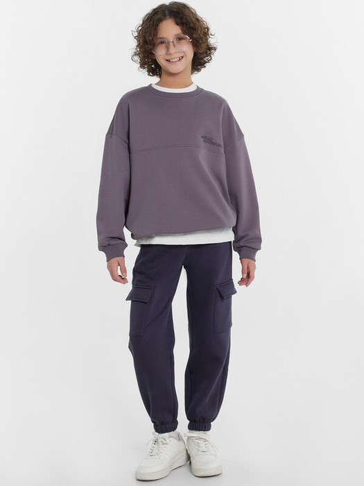 Свитшот свободного силуэта. Рукава длинные, втачные. Линия плеча спущена. По переду декоративное членение. Горловина круглой формы c окантовкой из трикотажного полотна рибаны. Низ рукавов и изделия обработаны трикотажным полотном рибана .