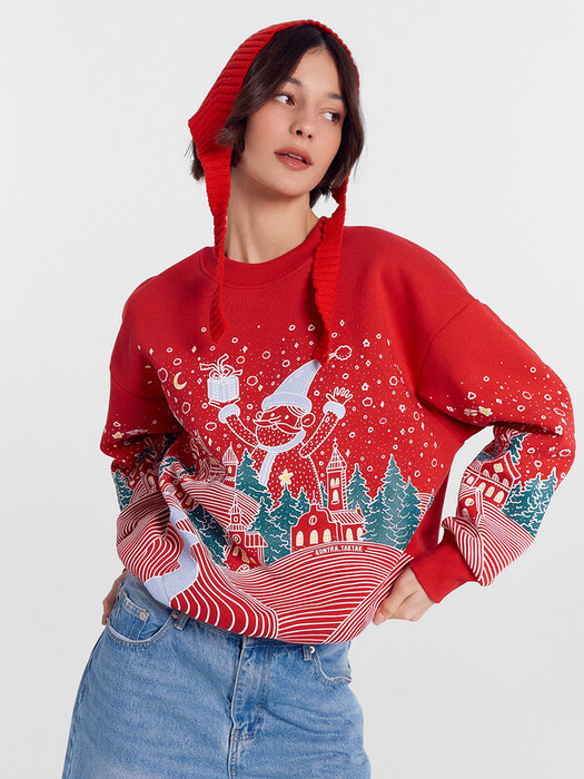 Совместные покупки Сургут Женская одежда Джемперы, свитеры, водолазки — Mark Formelle СВИТШОТ ЖЕНСКИЙ 122887/1 122887/1 китайский красный +печать 88669