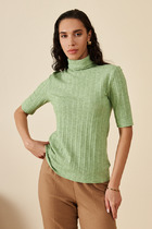 Рукава втачные длинные. Плечо спущено. По низу отрезные манжеты из рибаны.