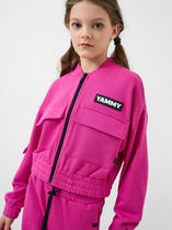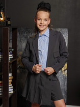 Жакет для мальчиков прямого силуэта с капюшоном. Капюшон на подкладке из основного полотна. Шов втачивания капюшона закрыт х/б тесьмой. Рукава втачные, линия плеча спущена. Притачные манжеты по низу рукавов и притачной пояс из рибаны. По переду застежка молния, карман кенгуру.