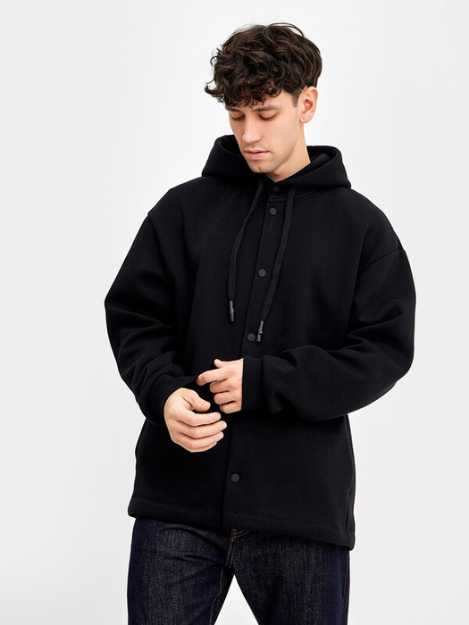 По переду обработана центральная застежка на кнопки, верхняя кнопка распологается на капюшоне.