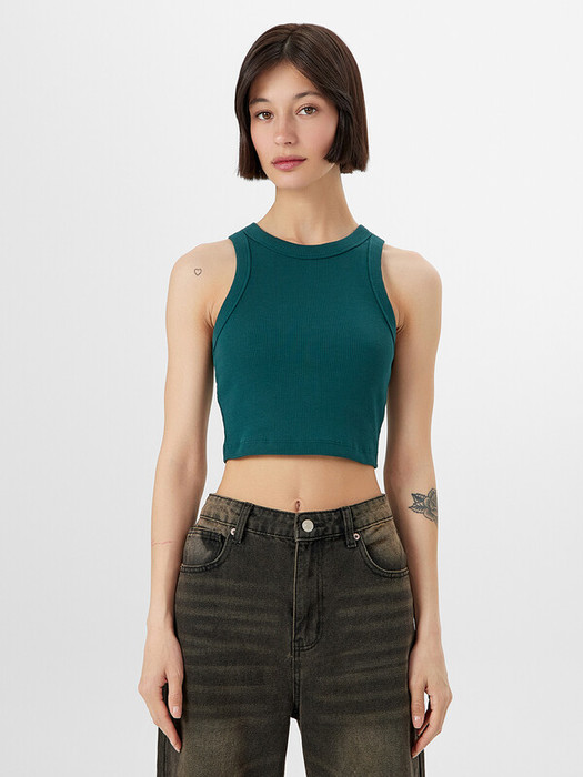 Стильный топ прилегающего силуэта. Выполнен из хлопковой трикотажной рибаны. Длина топа до линии талии. Вырез круглый, пройма "американского" типа. Рекомендуем для спорта и отдыха!