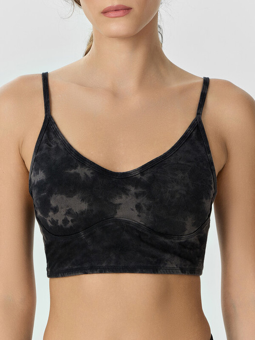 Топ облегающего силуэта, на узких бретелях. Горловина V-образной формы. Топ на подкладке из сетки, с чашками-вкладышами. Горловина и проймы окантованы бейкой из основного полотна. Бейки по проймам переходят в бретель, с регулировкой по длине (кольца и регуляторы). Топ с фигурным подрезом под грудью. В бретелях, окантовке горловин и пройм, по фигурному подрезу, эластичная тесьма. Нижний срез обработан швом вподгибку  с эластичной тесьмой внутри