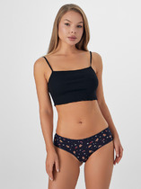 Классические трусики из натурального хлопкового полотна. Традиционная линия талии. Верхний срез трусиков обработан швом вподгибку, нижние передние – тесьмой, а задние декорированы узкими полосками из нежного кружева. Классика с изюминкой!