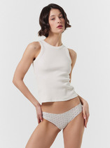 Трусы женские, средняя линия  талии, силуэт - классика. Передняя и задняя детали выполнены из хлопка. Верхний срез трусов обработан тесьмой с зубом 10мм (рабочая зона 8мм), нижние срезы обработаны тесьмой с зубом 8мм (рабочая зона 6мм). Подкладка ластовицы из хлопка, отлетная по верхнему срезу.