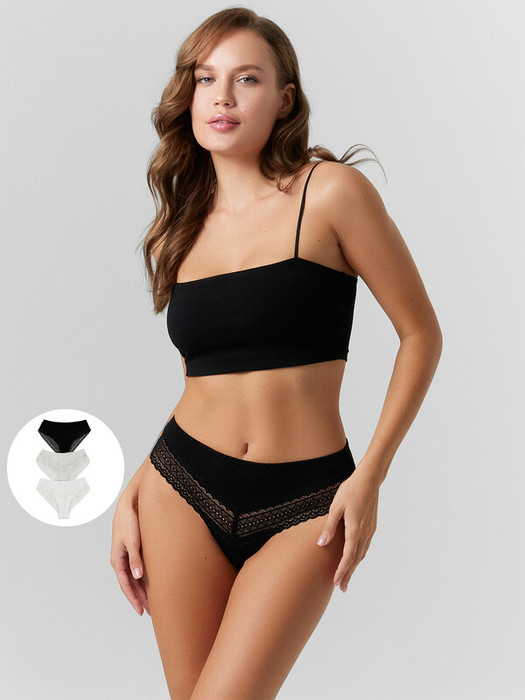 Трусы женские силуэта слип со средней посадкой из рибаны. По талии эластичная тесьма с зубом настрочена на 4-укольном зигзаге. Ножки обработаны узким кружевом шириной, на передней и задней частях со средним швом. Подкладка ластовицы из кулирной глади. Срезы ластовицы обработаны эластичной тесьмой с зубом на п/ш с изнаночной стороны.