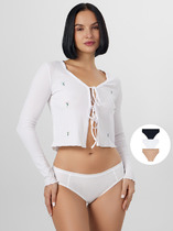 Трусы женские, средняя линия  талии, бразилиано. Передняя и задние детали выполнены из кружевного полотна. Подкладка ластовицы из хлопка, отлетная по верхнему срезу. Верхний срез обработан ловаблем. Нижние срезы обработаны жилкой.
