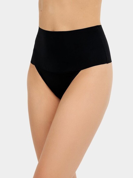 Трусы женские корректирующие, силуэт бразилиано с высокой линией талии и высокой линией ножек. Отрезные  горизонтально на уровне линии ножек.Нижняя ластовица выполнена из кулирного полотна и отлетная по переднему краю. Верхние и нижние срезы не обработаны.
