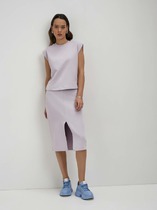 Юбка А-силуэта длиной миди, двухслойная. Верхний слой из сетки, нижняя юбка  из ткани (крой по косой). По верхнему срезу притачана эластичная тесьма (внутр. 20мм 20RV). Нижний срез  верхней юбки с "сырым срезом". Нижний срез нижней юбки обработан швом вподгибку.
