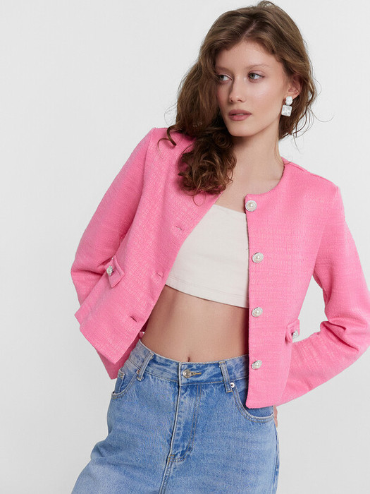Этот укороченный женский жакет прямого силуэта станет стильным дополнением вашего гардероба. Горловина круглой формы и длинные рукава придают жакету элегантный вид. Застежка на петли и пуговицы обеспечивает удобство, а спереди располагаются клапаны с пуговицами, добавляя изделию изысканности. Для его выполнения использовали материал академик с добавлением люрекса, который придает характерный легкий блеск. Этот жакет идеально подойдет для создания стильных образов, добавляя в ваш наряд нотку изящества и шика.