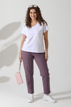 Брюки изготовлены из трикотажного полотна футер. Брюки свободного силуэта. Сиденье немного спущено. В боковых швах обработаны карманы. Подкладка карманов из кулирки.
