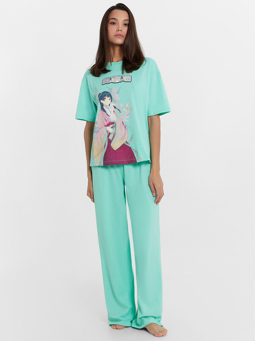 Женская пижама Mark Formelle станет удачным вложением в ваш домашний гардероб или прекрасным подарком для кого-то особенного. Она сочетает в себе удобство и стиль, делая ваши домашние вечера ещё уютнее. Футболка свободного кроя с круглой горловиной и короткими рукавами со спущенной линией плеча обеспечивает максимальный комфорт и свободу движений. Брюки свободного силуэта с эластичным поясом идеально сидят на талии, не стесняя движений и позволяя вам наслаждаться каждым моментом дома. Изделие выполнено из хлопковой кулирки — мягкого, дышащего и гипоаллергенного материала, который приятен к телу и обеспечивает максимальный комфорт. Хлопковая кулирка отлично сохраняет тепло и позволяет коже дышать, делая вашу пижаму идеальной для любого времени года. Подарите себе или своим близким эту чудесную пижаму и ощутите все преимущества комфорта и стиля в одном изделии.