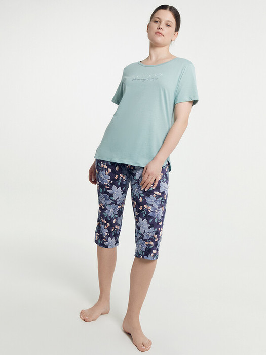 Совместные покупки Сургут Женская одежда Пижамы, халаты — Mark FormelleКОМПЛЕКТ ЖЕНСКИЙ (ДЖЕМПЕР, КАПРИ) 592228 592228 шалфей +акварельные