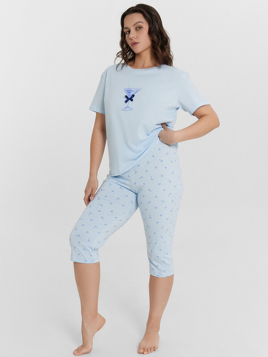 Совместные покупки Сургут Женская одежда Пижамы, халаты — Mark FormelleКОМПЛЕКТ ЖЕНСКИЙ (ФУТБОЛКА, БРИДЖИ) 592370 592370 голубое небо +кок