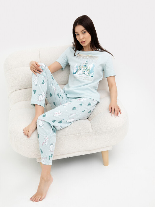 Милая пижама женская из высококачественного хлопка. Футболка свободного силуэта, с круглой горловиной и короткими рукавами. Свободные брюки длиной до косточки с классической линией талии и эластичной тесьмой в поясе. Комфортный комплект женский для сна и домашних дел, в нем уютно и комфортно. Идеальный вариант на каждый день. Широкая размерная сетка, есть модели plus-size, в линейке много базовых и других милых расцветок пижам. Рекомендуем пижаму женскую для сна, отдыха и домашних дел!