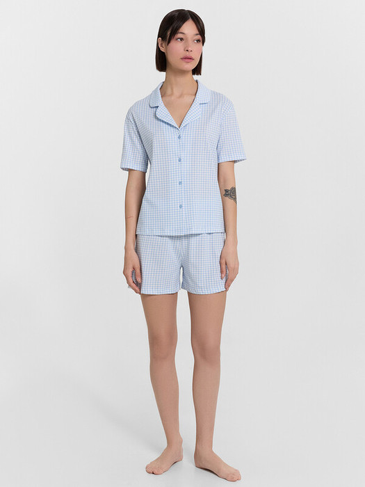 Совместные покупки Сургут Женская одежда Пижамы, халаты — Mark FormelleКОМПЛЕКТ ЖЕНСКИЙ (РУБАШКА, ШОРТЫ) 592553 592553 голубая клетка 1050