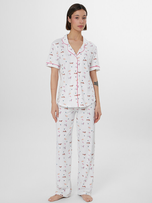Совместные покупки Сургут Женская одежда Пижамы, халаты — Mark FormelleКОМПЛЕКТ ЖЕНСКИЙ (ЖАКЕТ, БРЮКИ) 592523-1 592523-1 собачки на белом