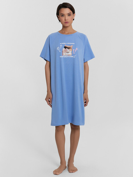 Совместные покупки Сургут Женская одежда Пижамы, халаты — Mark FormelleСОРОЧКА НОЧНАЯ ЖЕНСКАЯ 572385 572385 св.синий +печать 18114