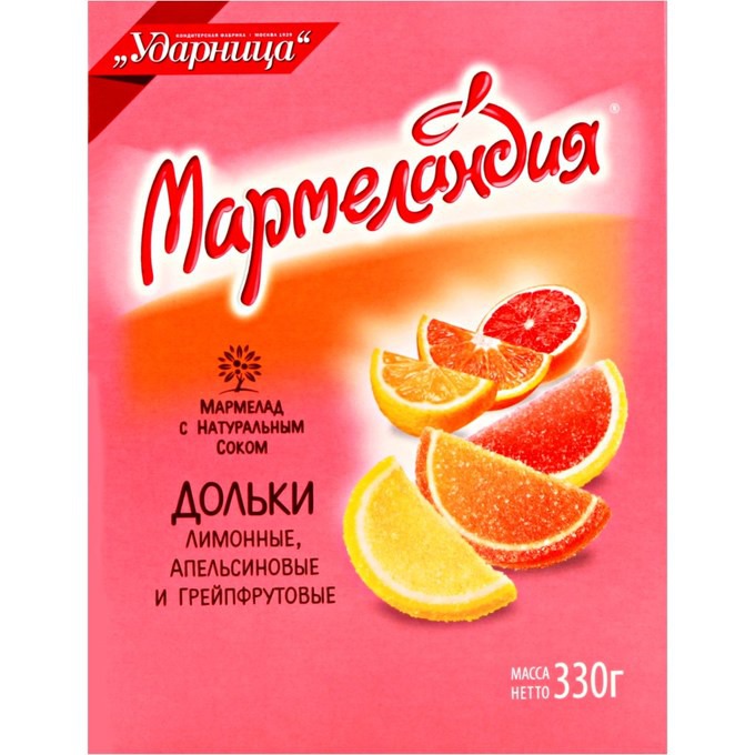 Знакомое с детства лакомство. Дольки «Мармеландия» от кондитерской фабрики «Ударница» изготавливаются по новой, усовершенствованной рецептуре с добавление натурального фруктового сока