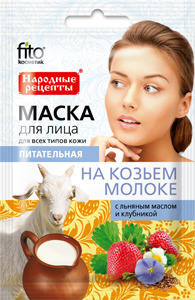 Натуральная маска на козьем молоке с льняным маслом и клубникой «Питательная» для всех типов кожи.