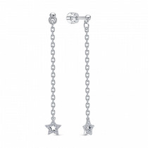 Совместные покупки Сургут Ювелирные украшения и бижутерия Серьги — Моносерьга-продёвка с каффой из родированного серебра - Звёзды, длина 14 см 925