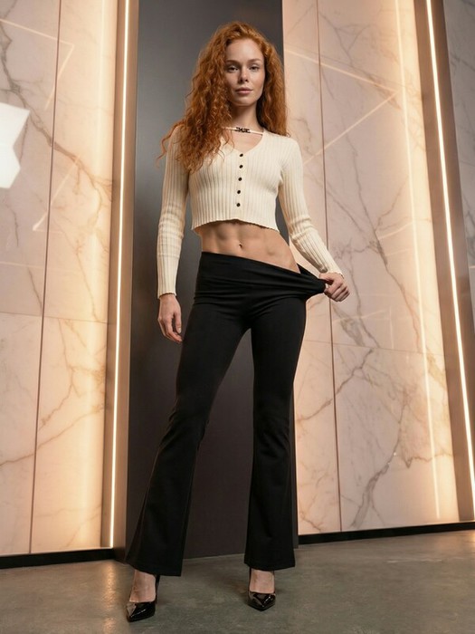 Высокая посадка формирует аккуратную линию талии и визуально вытягивает пропорции. Пояс плотно фиксируется, не скручивается и обеспечивает комфорт в течение дня.