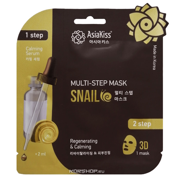 Мультишаговая 3D маска с экстрактом слизи улитки от торговой марки Asia Kiss плотно прилегает к коже, обеспечивая максимально эффективное впитывание увлажняющей эссенции. Благодаря ей кожа становится более упругой, разглаживаются морщины, улучшается клеточный обмен веществ. Улиточный муцин активизирует регенерацию, в результате чего быстрее заживают микротрещины и уходят покраснения. Купить мультишаговую 3D маску с экстрактом слизи улитки Asia Kiss с доставкой на дом по Москве и Подмосковью можно в интернет-магазине KorShop.ru.