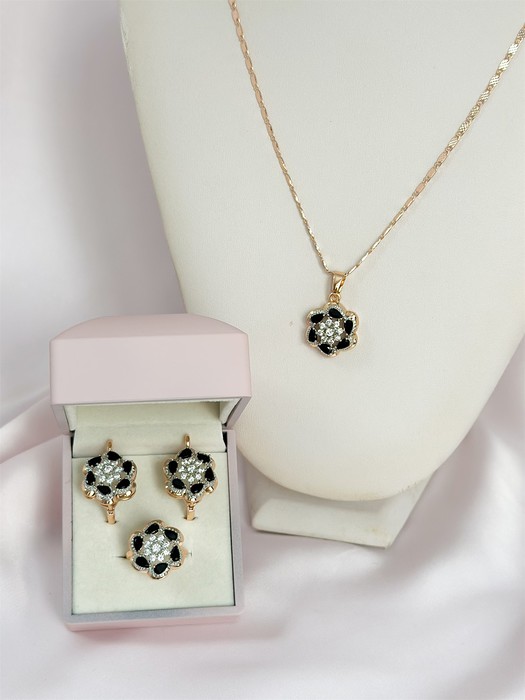Роскошный набор из дубайского золота. В набор входят: серьги, кольцо, цепочка и подвеска.